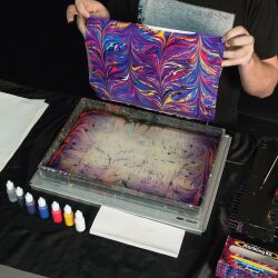 Farba do marblingu (marmurkowania) tkanin, papieru i innych powierzchni. Dzięki niej możesz tworzyć unikalne efekty na ubraniach, akcesoriach, arkuszach papieru, opakowaniach oraz wielu innych akcesoriach. Twórz swoje rękodzieło na odzieży w marmurkowych wzorach i kolorach. Customizacja i personalizacja tkanin jeszcze nigdy nie była tak łatwa, atrakcyjna i satysfakcjonująca. Baw się malowaniem ubrań, nawet jeżeli nie posiadasz zdolności plastycznych i nie potrafisz malować. Tu wzory tworzą się w pewnym sensie same. Umiejętność malowania oraz cieniowania nie ma większego znaczenia. Weź zestaw i baw się kolorami!