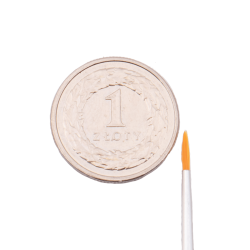 Pędzel wykonany z nylonu, w kolorze żółtym, okrągły. Skuwka pędzla wykonana jest z mosiądzu niklowanego, dzięki czemu metal nie rdzewieje.
