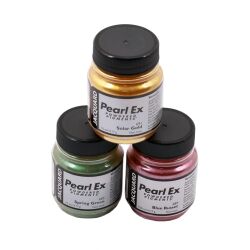 JACQUARD Pearl EX to najwyższej jakości pigmenty proszkowe w metalicznych i perłowych kolorach stworzonych do rękodzieła, customizacji i personalizacji, które wykorzystasz w swojej artystycznej pracy na wiele sposobów. Do dyspozycji masz wyjątkowe barwniki o bardzo uniwersalnym i wszechstronnym charakterze. Możesz stosować je praktycznie w każdym przypadku, w którym chcesz osiągnąć efekt metaliczny lub perłowy. Jeżeli zajmujesz się na przykład organizacją imprez weselnych i uroczystości ślubnych, urodzinowych czy jubileuszowych możesz złote, srebrne i perłowe pigmenty wykorzystać do tworzenia unikatowych ozdób i elementów wystroju wnętrz. Jeżeli zajmujesz się customizacją i personalizacją ubrań oraz butów, metaliczne proszki Pearl EX stosuj w swoich unikatowych projektach do malowania złotych, srebrnych i perłowych elementów oraz detali. Pigmenty w proszku możesz bez problemu mieszać z farbami akrylowymi, olejowymi, tuszami drukarskimi, enkaustykami, tuszami alkoholowymi, epoksydami, klejami, żywicami odlewniczymi, gliną, lakierami ... etc. Po prostu wymieszaj je z dowolnym medium i działaj. JACQUARD Pearl EX to bezpieczny, obojętny pigment proszkowy, który charakteryzuje się wysoką trwałością, odpornością i stabilnością koloru. Zróżnicowane rozmiary cząstek zapewnią Ci odmienne i unikatowe efekty - od gładkiego perłowego, po metaliczny połysk o mniejszym lub większym nasyceniu. Użycie jest banalnie łatwe - po prostu wymieszaj proszek ze spoiwem przeznaczonym do powierzchni, którą chcesz malować, weź pędzel i maluj. JACQUARD Pearl EX możesz zmieszać, np. z Gumą Arabską, by uzyskać niesamowity metaliczny tusz do kaligrafii lub akwarelę DIY. Ten sam metaliczny proszek możesz zmieszać również z lakierem JACQUARD Pearl EX Varnish, by malować gładkie, nieporowate powierzchnie. Możesz również mieszać sproszkowany pigment z bezbarwnym wypełniaczem do tkanin JACQUARD, by malować odzież i tekstylne buty oraz akcesoria. Możliwości masz nieskończenie wiele! Wyjątkowa formuła, która wesprze Twoje rękodzieło i sprawi, że wykończenie w perłowym lub metalicznym kolorze nigdy nie zmatowieje i nie straci swoich estetycznych walorów.