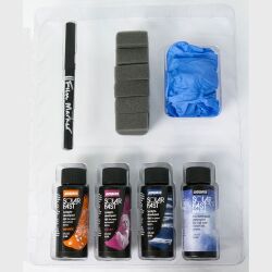 Kompletny zestaw startowy JACQUARD SolarFast Kit, dzięki któremu w bardzo prosty i przystępny sposób wykonasz grafikę światłoczułą za pomocą słońca lub lamp UV na koszulkach, bluzach, torbach, tekstylnych akcesoriach, płótnie malarskich lub grubym papierze (np. akwarelowym lub graficznym). Z łatwością wykonasz światłoczułe odbitki fotograficzne na ubraniach, wykorzystując moc światła słonecznego. Zestaw zawiera wszystko, czego potrzebujesz, by tworzyć atrakcyjne customizowane ubrania i akcesoria. Światłoczułe farby SolarFast pozwolą Ci, wykonywać odbitki na tkaninach ze zdjęć, rysunków, wycinków lub płaskich przedmiotów. Możesz tworzyć je na tkaninach, płótnie lub papierze bez konieczności utrwalania termicznego, chemicznego czy parowego. Prawdopodobnie nie znajdziesz lepszego i łatwiejszego wprowadzenia do rękodzieła wykorzystującego energię słoneczną. JACQUARD SolarFast Kit to doskonały zestaw startowy dla Customizerów, Artystów, Fotografów, Grafików, Rysowników, ale i kompletnych amatorów oraz dzieci. To również świetny pomysł na grupową aktywność i zabawę w większym gronie. Zastaw wystarczy do wykonania odbitek na 8 koszulkach lub kilkudziesięciu odbitek papierowych.