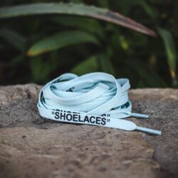 LACE LAB OFF-WHITE Laces 8mm Neon Light Blue - Błękitne płaskie sznurowadła z czarnym napisem