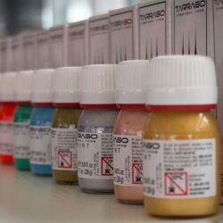 Metaliczne farby akrylowe do customizacji sneakersów, odzieży i akcesoriów. Najczęściej stosowane do naturalnych i syntetycznych skór licowych oraz jeansu i tekstyliów. Właściwe zarówno do malowania detali i precyzyjnych wzorów o ostrych krawędziach, jak i całych elementów. Farba może być aplikowana za pomocą małych i dużych pędzelków i aerografu. Grupa farb najczęściej wykorzystywana przez customizerów do personalizacji butów, jeansowych katan, skórzanych kurtek, plecaków, czapek, t-shirtów i innych akcesoriów. Farby TARRAGO SNEAKERS PAINT równie dobrze spełniają swoją funkcję przy zaawansowanych i prostych renowacjach popularnych kicksów. Wyjątkowa formuła farby o wysokiej koncentracji doskonałych pigmentów przekłada się na siłę i jakość krycia. Jednym z największych atutów produktu jest jakże pożądane wykończenie o stosunkowo niskim stopniu połysku, które można łatwo regulować dedykowanymi finisherami osiągając bardzo naturalny mat, wykończenie satynowe lub dowolny stopień połysku. Większość farb akrylowych daje wykończenie w bardzo wysokim połysku, który trudno zredukować.
